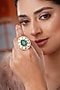 Featuring a gold finish handcrafted ring studded with kundan polki and green stones, set in mixed metal. It has an adjustable closure. Ideal for festive occasions, weddings, or elevating your elegant evening look.
