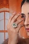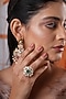 Featuring a gold finish handcrafted ring studded with kundan polki and green stones, set in mixed metal. It has an adjustable closure. Ideal for festive occasions, weddings, or elevating your elegant evening look.