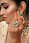 Featuring a gold finish handcrafted ring studded with kundan polki and green stones, set in mixed metal. It has an adjustable closure. Ideal for festive occasions, weddings, or elevating your elegant evening look.