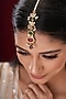 Featuring a gold finish maangtikka studded with kundan polki, red and green stones, set in mixed metal. It has a hook closure. Ideal for festive occasions, weddings, or elevating your elegant evening look.