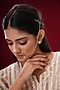 Featuring a gold finish nath studded with kundan polki, green stone and pearl chain, set in mixed metal. It has a push wire closure. Perfect for festive occasions, poojas, weddings or cultural events, this jewellery is a wardrobe must for those who love to shine effortlessly.