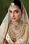 Featuring a gold finish necklace studded with kundan polki and green stones, set in mixed metal. It has an adjustable dori closure. It is paired with a matching pair of earrings having a push back closure. Ideal for festive occasions, weddings, or elevating your elegant evening look.