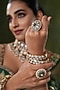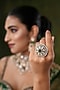 Featuring a gold finish ring studded with kundan polki and green stones, set in mixed metal. It has an adjustable closure. Ideal for festive occasions, weddings, or elevating your elegant evening look.