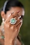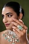 Featuring a gold finish ring studded with kundan polki and mint stones, set in mixed metal. It has an adjustable closure. Ideal for festive occasions, weddings, or elevating your elegant evening look.