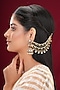 Featuring a pair of gold finish kaanchain earrings studded with kundan polki, green stones and pearls, set in mixed metal. It has a push back closure. Perfect for festive occasions, poojas, weddings or cultural events, this jewellery is a wardrobe must for those who love to shine effortlessly.
