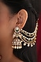 Gold Finish Kundan Polki & Pearl Kaanchain Earrings (Set Of 2)