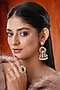 Featuring a pair of gold finish jhumka earrings studded with kundan polki and red stones, set in mixed metal. It has a push back closure. Ideal for festive occasions, weddings, or elevating your elegant evening look.