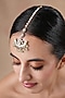 Featuring a gold finish maangtikka studded with moissanite polki, pearls and aqua stones, set in mixed metal. Ideal for festive occasions or wedding celebrations.