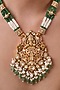 Gold Finish Moissanite Polki & Emerald Beaded Long Pendant Necklace Set