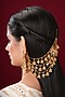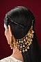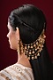 Featuring a pair of gold finish temple earchains studded with pearls and jhumkas, set in mixed metal. It has a push back closure. Perfect for festive occasions, poojas, weddings or cultural events, this jewellery is a wardrobe must for those who love to shine effortlessly.