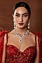 Featuring a white finish necklace studded with zircons, swarovski crystals, green stones and pearls, set in mixed metal. It is paired with a matching pair of earrings. Whether you're wearing a gown or a modern saree, this necklace will add a touch of elegance to your look.