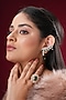 Featuring a pair of white finish earcuffs studded with swarovski and green stones, set in mixed metal. It has a push back closure. Ideal for festive occasions, weddings, or elevating your elegant evening look.