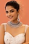 Featuring a 22 Kt white gold plated necklace studded with diamond and sapphire, set in silver alloy. It is paired with a matching pair of earrings.