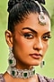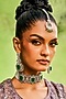The maangtikka used in the image is for styling purposes only.