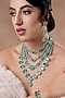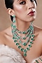Featuring a white rhodium finish layered necklace studded with swarovski diamonds and jade stones, set in mixed metal. It is paired with a matching pair of earrings. Ideal for festive occasions or wedding celebrations.