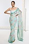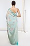 Ekaya presents an aqua blue handwoven banarasi saree in pure georgette base with digital print. Style your Banarasi saree with a blouse, traditional temple jewellery, and a low bun with gajra for a classic festive elegance.
