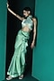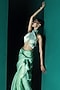 Featuring an aquamarine handwoven saree in organza base. It is paired with an unstitched blouse. Perfect wear for a festive occasion or wedding ceremony.