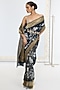 Ekaya presents a black handwoven banarasi saree in crepe base with digital print. Style your Banarasi saree with a blouse, traditional temple jewellery, and a low bun with gajra for a classic festive elegance.