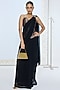 Featuring a black saree in pure chiffon base with a gold hardware brooch and an attached blouse piece. Accentuate it with silver earrings and heels for a festive occasion.