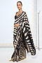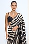Featuring a black and silver handwoven saree in pure silk base with zari embroidery and kadhwa banarasi technique, including an attached blouse piece. Accentuate it with polki earrings and heels for a festive occasion.