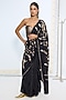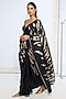 Featuring a black and silver handwoven saree in silk base with silver zari stripes woven in the kadwa technique and an attached blouse piece. Accentuate it with polki earrings and heels for a festive occasion.