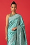 Featuring a blue handwoven banarasi saree in silk. It is paired with a matching unstitched blouse.