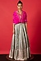 Featuring a blue handwoven lehenga in satin silk base with meenakari work. It is paired with a contrasting unstitched blouse piece and a hand-embroidered organza dupatta.