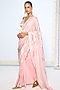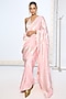Featuring a blush pink handwoven saree in pure silk base with zari embroidery and kadhwa banarasi technique, including an attached blouse piece. Accentuate it with polki earrings and heels for a festive occasion.