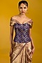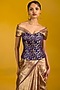 Featuring a brown banarasi handwoven saree in tissue silk base. It is paired with an unstitched blouse. Accentuate it with statement jewellery and heels for a festive occasion or sangeet ceremony.