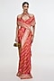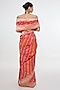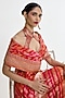 Featuring a carmine red handwoven saree in satin silk base with kadhwa banarasi technique. It is paired with an unstitched blouse. Accentuate it with statement earrings, hair accessories or a potli bag, perfect for weddings and festive celebrations where you want to make a statement.