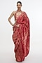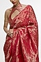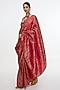 Featuring a crimson red handwoven saree in silk tissue and pure satin silk base with banarasi tanchoi detail. Accentuate it with a blouse, statement earrings and strappy heels for festive gatherings or family functions.