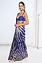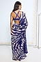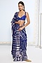 Featuring a dark blue handwoven saree in silk base with silver zari stripes woven in the kadwa technique and an attached blouse piece. Accentuate it with polki earrings and heels for a festive occasion.