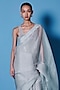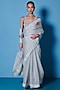 Featuring a dove grey handwoven saree in organza base. It is paired with an unstitched blouse. Perfect wear for a festive occasion or wedding ceremony.