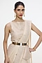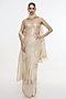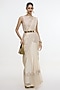 Featuring an ecru handwoven saree in pure mashru silk base with embroidery. It is paired with an unstitched blouse. Accentuate it with statement earrings, hair accessories or a potli bag, perfect for weddings and festive celebrations where you want to make a statement.