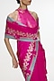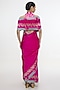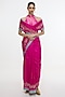 Featuring a fuchsia pink handwoven saree in mashru silk base with kadhwa banarasi technique details. It is paired with an unstitched blouse. Accentuate it up with jewellery, sleek gold belt to cinch the waist and give a polished look, perfect for intimate crad nights, cozy diwali dinners, or any close knit celebration.