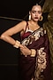 Featuring a garnet handwoven saree in pure satin silk base with kadwa banarasi technique and gold detail. It is paired with an unstitched blouse. Accentuate it with statement jewellery and heels for weddings.