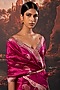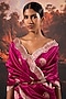 Featuring a garnet handwoven saree in silk base with banarasi kadhwa, paisley motif detailing and an attached blouse piece. Style it with statement jewellery and heels for a wedding or festive occasion.