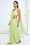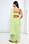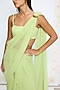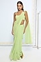 Featuring a mint green saree in chiffon base with black polka dot print and an attached blouse piece. Accentuate it with silver earrings and heels for a festive occasion.