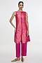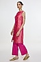 Featuring a hot pink handwoven jacket in satin silk base with banarasi tanchoi technique. It is paired with pants. Accentuate it with statement earrings and strappy heels for festive ceremonies.