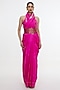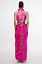 Featuring a hot pink handwoven saree in satin silk base with oriental motifs and kadhwa banarasi technique detail. It is paired with an unstitched blouse. Accentuate it up with jewellery, sleek gold belt to cinch the waist and give a polished look, perfect for intimate crad nights, cozy diwali dinners, or any close knit celebration.