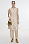 Featuring an ivory and gold handwoven jacket in satin silk base with banarasi tanchoi technique. Accentuate it with pants, statement earrings and strappy heels for a stylish ensemble, ideal for evening soirees, festive gatherings or family functions.