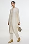 Featuring an ivory handwoven kurta in pure mushroom silk base with embroidery. It is paired with pants. Accentuate it with statement earrings and strappy heels for festive gatherings or family functions.