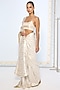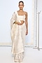 Featuring an ivory handwoven saree in pure silk base with zari embroidery and kadhwa banarasi technique, including an attached blouse piece. Accentuate it with polki earrings and heels for a festive occasion.