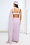 Featuring a lavender saree in chiffon base with crimson polka dot print and an attached blouse piece. Accentuate it with silver earrings and heels for a festive occasion.