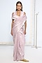 Featuring a lavender handwoven saree in silk base silver zari stripes woven in the kadwa technique and an attached blouse piece. Accentuate it with polki earrings and heels for a festive occasion.
