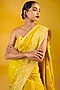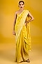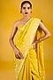 Featuring a mustard yellow banarasi handwoven saree in chiffon base with moonga technique. It is paired with an unstitched blouse. Accentuate it with statement jewellery and heels for a festive occasion or haldi ceremony.