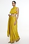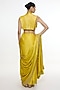Featuring a mustard yellow handwoven banarasi saree in mashru silk base with embroidery. It is paired with an unstitched blouse. Accentuate it up with jewellery, sleek gold belt to cinch the waist and give a polished look, perfect for intimate crad nights, cozy diwali dinners, or any close knit celebration.
