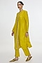 Featuring a mustard yellow handwoven kurta in pure mushroom silk base with embroidery. It is paired with pants. Accentuate it with statement earrings and strappy heels for festive gatherings or family functions.