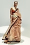 Featuring an ochre and vanilla saree in organza base with polka dot digital print. It is paired with an unstitched blouse. Accessorize it with statement jewellery and heels for cocktail parties.