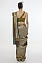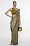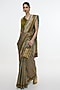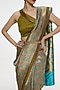 Featuring an olive green handwoven saree in satin silk base with banarasi embossed technique. Accentuate it with a blouse, statement earrings and strappy heels for festive gatherings or family functions.
